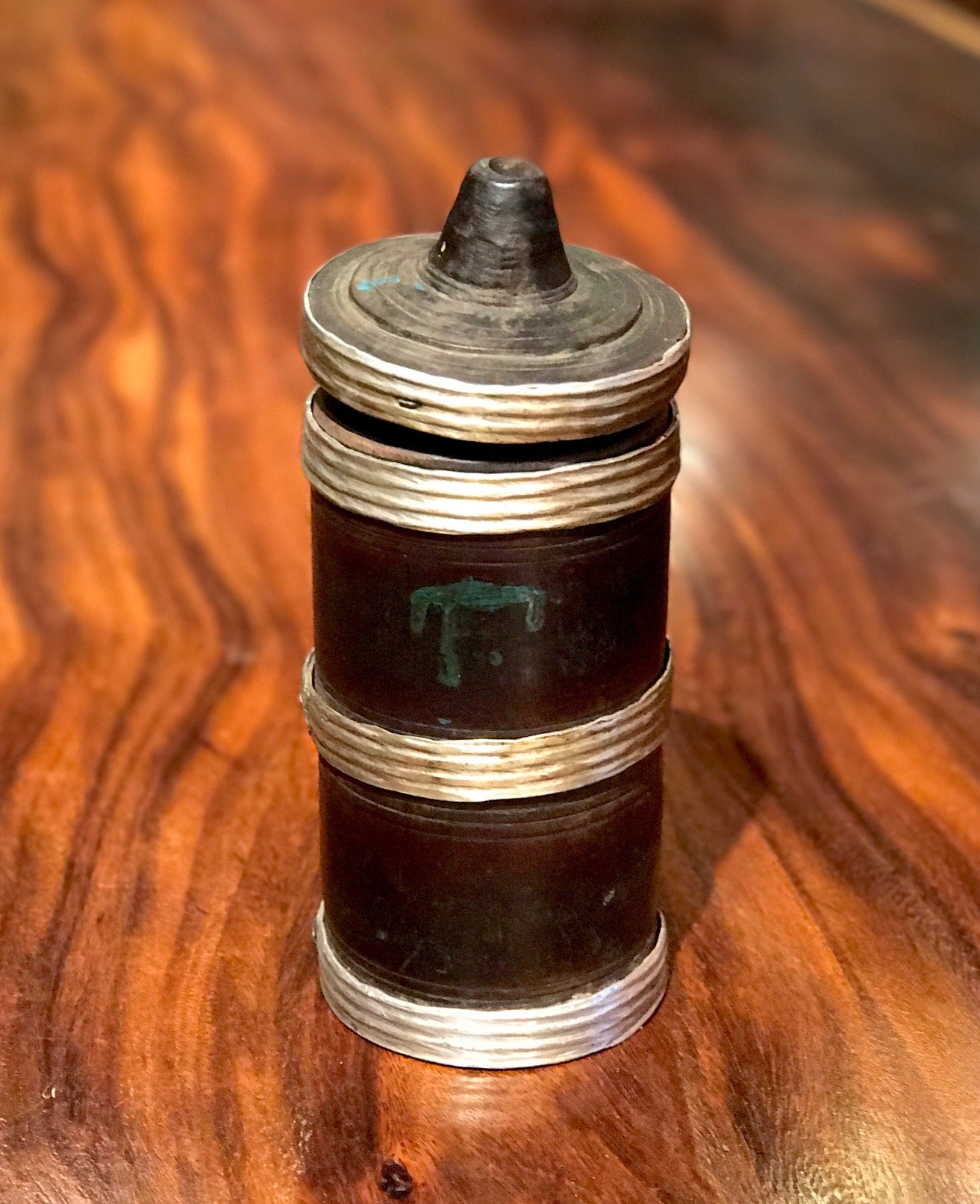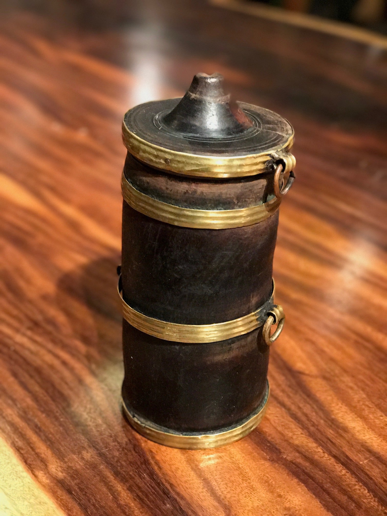 This beautiful Ikebana flower arranging basket just arrived on our recent shipment from Japan. It was made in the first half of the 20th century and is woven from variegated or striped bamboo. Some of the particularly nice features of this basket are the root handle that comes from the bamboo rhizome, the finely woven twining that makes up the body of the basket, the wider smoked bamboo strips that show off the multi-colored bamboo, and the original artist’s signature carved into the bottom. This basket is a hand woven masterpiece from early 1900’s Japan and has a wonderfully deep and warm patina.