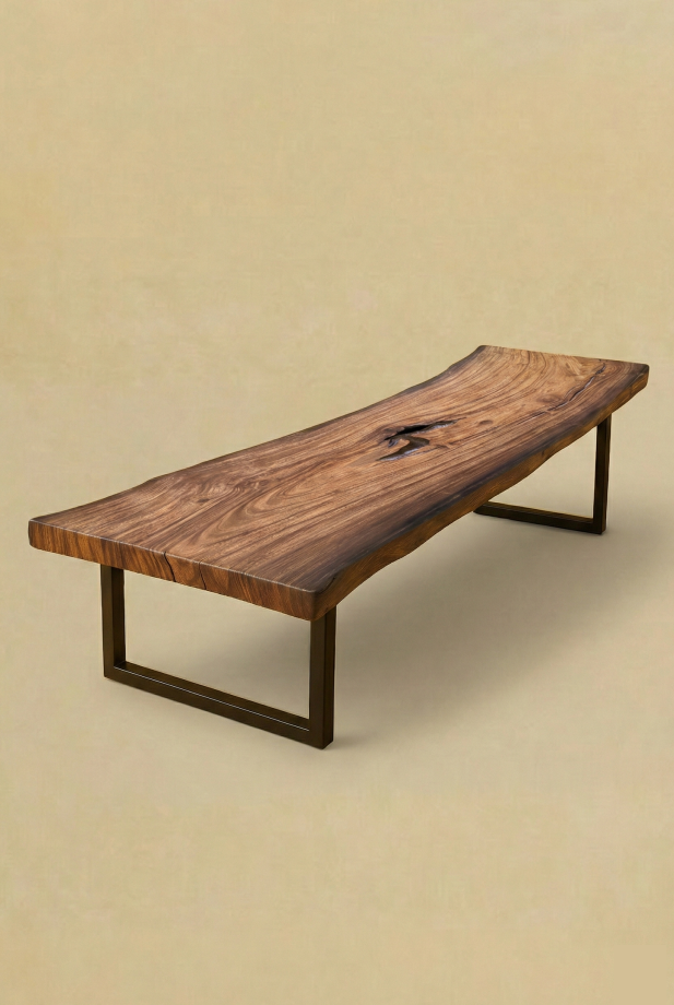 Our hand rubbed oil finish is an extremely durable finish that richens the wood grain and color of our tables more than a clear top coat. Overall the look and feel of this finish option is soft, low sheen, and when you touch or rub the slab table you feel like you are truly connecting with the natural essence of the wood. The hand rubbed finishes we use are plant based 0-VOC products that incorporate 2-part hardeners to increase durability. The catalyzed 2-part hard wax oil finish utilizes molecular bonding to adhere to the wood on a cellular level, rather than forming a thick film on the top layer. This is an easy to clean finish option that can be spot fixed or repaired if need be, and there are a variety of wood creams and maintenance oils that can be purchased if a quick easy refresh is desired.